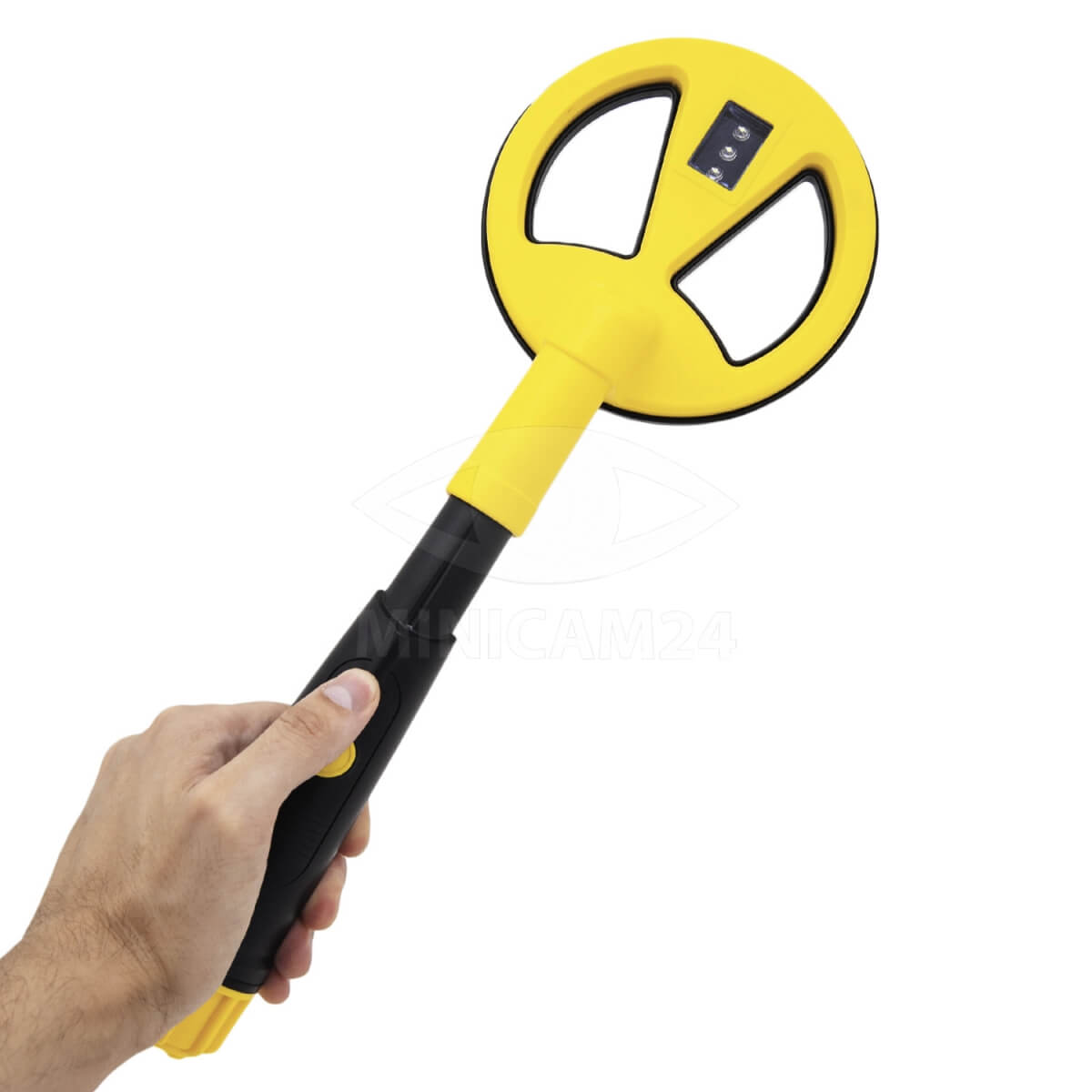 Ручной металлодетектор с возможностью погружения в воду на глубину до 10 метров. Об обнаружении цели прибор уведомит пользователя посредством вибрации и светового сигнала. Кистевая петля надежно фиксирует металлодетектор на запястье. Для питания устройства используется одна батарейка типа «Крона» (нет в комплекте).