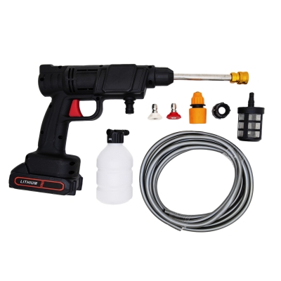 Беспроводная мойка-пистолет высокого давления Forgun станет удобной заменой массивным инструментам для мытья автомобиля. За счет компактности и отсутствия проводов пистолет для мойки удобно брать с собой и легко использовать. Пистолет для мойки высокого давления подключается к шлангу или в ведро с водой и примерно за 5-10 минут очищает транспорт. Удобный беспроводной пистолет для мойки выдает мощную струю воды до 5 л/мин с давлением 0,6 МПа. Распылять воду можно на расстоянии до 8 метров. Беспроводной пистолет для мойки автомобиля с эргономичной ручкой оснащен кнопкой, с помощью которой можно регулировать производительность.